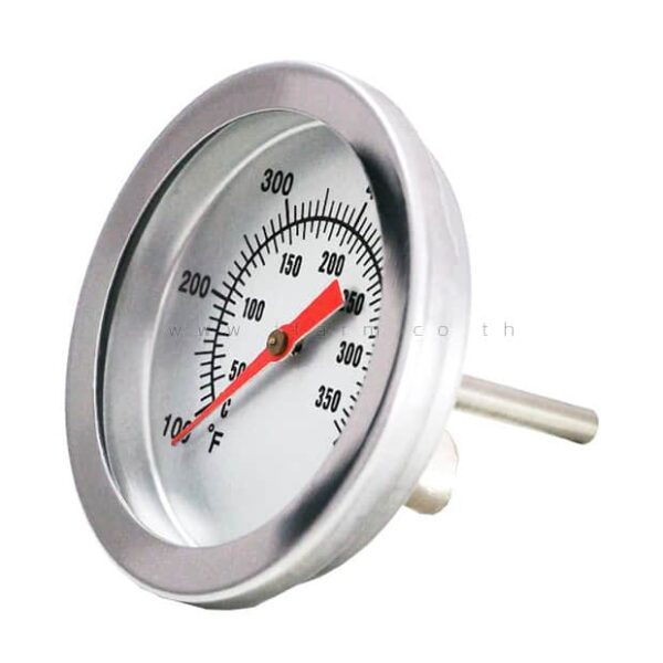 เกจวัดอุณหภูมิ (Thermometer Gauge) รุ่นแบบเกลียว/ก้านออกหลัง (Center Back Connection) หน้าจอมีเส้นผ่าศูนย์กลาง 2 นิ้ว (รวมขอบ) อ่านค่าได้ทั้งองศาเซลเซียส (50-350 °C) และฟาเรนไฮต์ (100-700 °F) โครงสร้างผลิตจาก Stainless จึงทนทาน และ ไม่เกิดสนิม เฟืองด้านในทำจากเหล็ก ซึ่งมีความแข็งแรง ใช้งานได้นาน หน้าปัดและเข็มชี้วัดอุณหภูมิ ทำจากอลูมิเนียม หน้าปัดทำจากกระจก