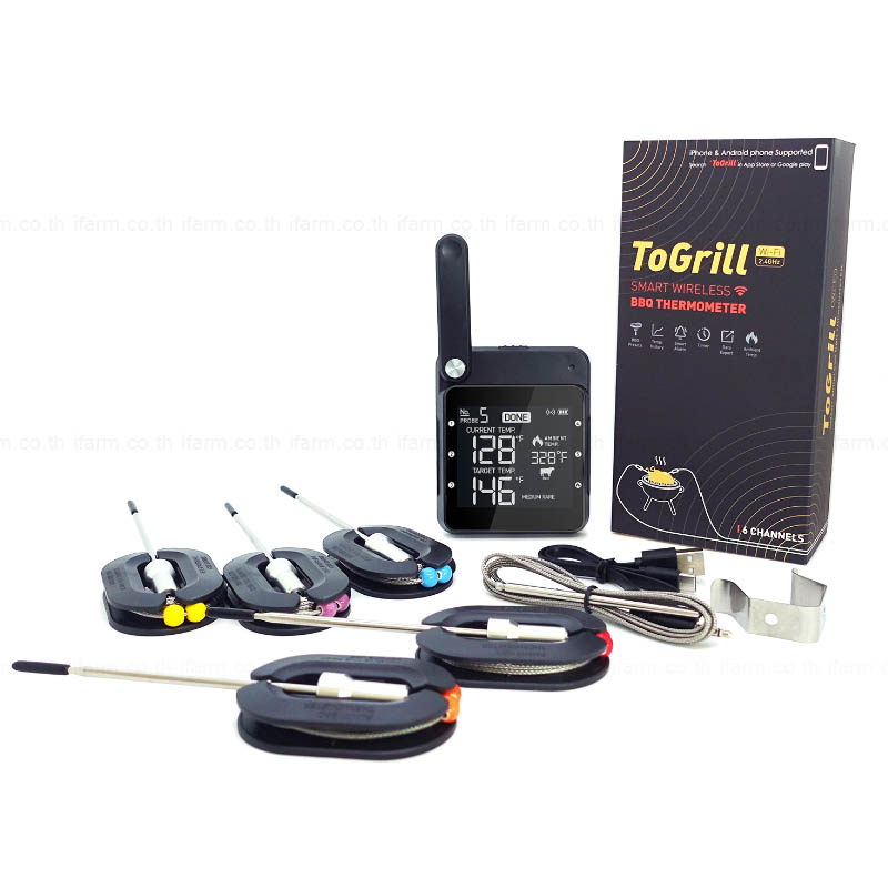 มีโพรบวัดอุณหภูมิ 6 อัน สามารถวัดอุณหภูมิอาหารหลาย ๆ อย่างได้พร้อมกัน สะดวกรวดเร็ว
