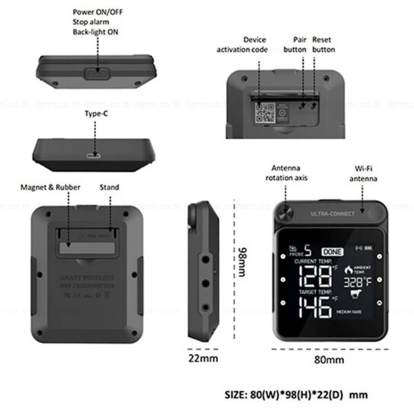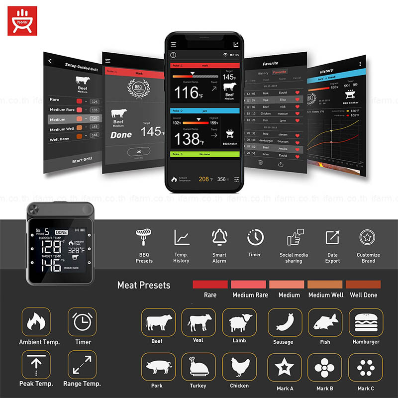 เครื่องวัดอุณหภูมิอาหาร WiFi & Bluetooth