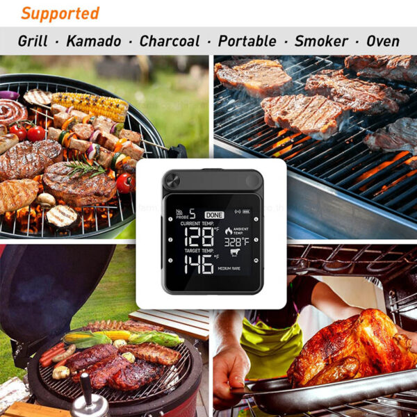 เครื่องวัดอุณหภูมิอาหารผ่านมือถือ (WiFi & Bluetooth Food Thermometer) รุ่น N1 มาพร้อมกับโพรบวัดถึง 6 โพรบ (โพรบวัดอุณหภูมิอาหาร 5 อัน + โพรบวัดอุณหภูมิโดยรอบ 1 อัน) ช่วยให้วัดอุณหภูมิอาหารหลายชนิดได้ในเวลาเดียวกัน