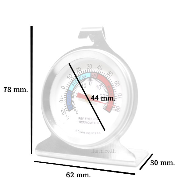 เครื่องวัดอุณหภูมิตู้แช่ / ตู้เย็นแบบเข็ม (Dial Freeze Thermometer) ราคาถูก ไม่ต้องตั้งค่าอะไรให้ยุ่งยาก ไม่ต้องใส่ถ่าน วัดค่าได้แม่นยำ ช่วงวัดกว้าง (-30 ถึง 30 °C / -20 ถึง 80 °F) ตัวเครื่องทำจาก Stainless ทนความชื้น ไม่เป็นสนิม ใช้งานได้นาน แขวน หรือตั้งก็ได้ จึง Fit กับทุกการใช้งานของคุณ พร้อมใช้งานทันที