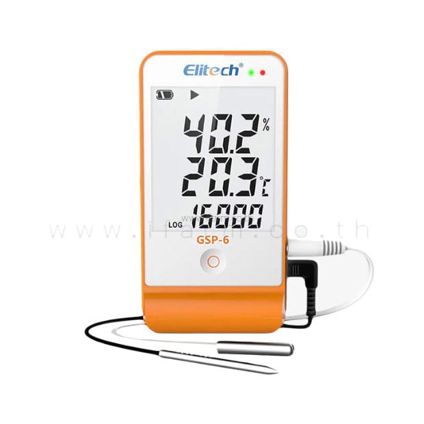 เครื่องวัดอุณหภูมิ-ความชื้นสัมพัทธ์แบบ Data Logger รุ่น GSP-6 ช่วยให้คุณเก็บรวบรวมข้อมูลอุณหภูมิ (Temperature) และความชื้น (Humidity) ได้พร้อมกันอย่างแม่นยำ จุดเด่นคือสามารถเลือกรูปแบบการบันทึกข้อมูลได้ถึง 2 แบบ คือ Full Record Stop และ Cyclic Record ออกแบบให้ทำงานสอดคล้องกับมาตรฐาน GSP ชุดใหม่ สามารถบันทึกข้อมูลได้สูงสุดถึง 16,000 ข้อมูล ระบบแจ้งเตือนด้วยสัญลักษณ์ หน้าจอ LCD ขนาดใหญ่คมชัดอ่านค่าได้ชัดเจน และสามารถเลือกตั้งค่าช่วงเวลาในการบันทึกข้อมูลได้อย่างอิสระ ตั้งแต่ 10 วินาทีไปจนถึง 24 ชม. ตัว Sensor อุณหภูมิและความชื้นเป็น External Sensor ใช้งานง่าย สะดวก