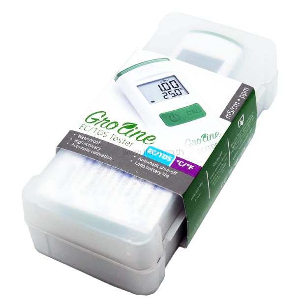 เครื่องวัดค่า EC น้ำ GroLine EC / TDS Meter รุ่น 98318 ของ Hanna Instrument จากประเทศอิตาลี ใช้วัดค่านำไฟฟ้า หรือ Electricity Conductivity (EC) และ ปริมาณธาตุที่ละลายอยู่ในน้ำ หรือ Total Dissolved Solids (TDS) เครื่องวัดค่า EC น้ำ รุ่น 98318 มีจุดเด่นตรงที่สามารถ Calibrate ได้ 2 แบบ คือแบบจุดเดียว และแบบเร็ว และมีฟังก์ชั่นชดเชยอุณหภูมิอัตโนมัติ (Automatic Temperature Compensation – ATC) ลดผลกระทบจากการเปลี่ยนแปลงของอุณหภูมิจึงวัดค่าได้อย่างแม่นยำ